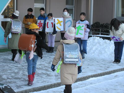 20日間の冬休みが終わり、1月12日(金)から3学期がスタートしました。朝から雪が降っていましたが、子供たちは雪や寒さにも負けず、元気いっぱい登校していました。