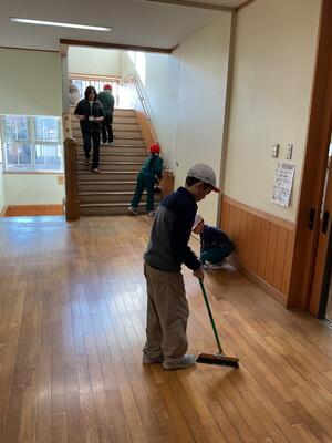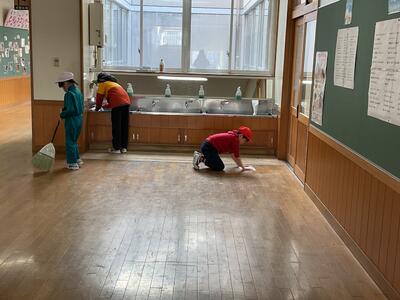 床を水拭きしたり、いつもより時間をかけて隅々まで掃除したりしています。「みんなが」真面目に、一生懸命に掃除に取り組んでいるところが素晴らしい。
