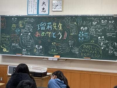 6年生の教室の黒板一面に、担任へのメッセージが書かれていました。今日は、担任の誕生日!