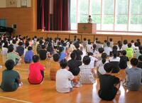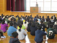「始業式」では、校長先生から、今年度全校で取り組んでいる「思いやりの心を自分でつくること」と「自分で考えて行動すること」についてのお話がありました。児童会からは、3学期に全校でがんばることとして、「明るいあいさつをすること」と「思いやりや感謝の気持ちをもつこと」について、全校児童に呼びかけました。