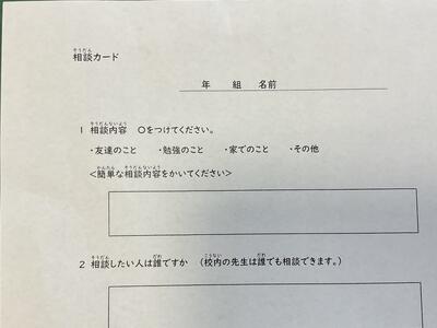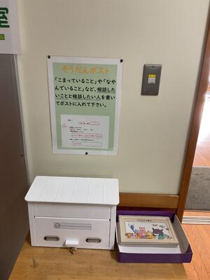 相談ボックスの設置 投稿: 校長 (15:14) カテゴリー: 今日の出来事 子供たちからの相談に日常的に対応するために 校舎1階の会議室の近くに「相談ボックス」を設置しました。 今日は全校朝会でしたので、生徒指導主事の千葉先生から、子供達に相談ボックスの設置の理由と使い方を説明しました。 どんな小さなことにでも、校内のスタッフで対応する体制が整いました。 Tweet -