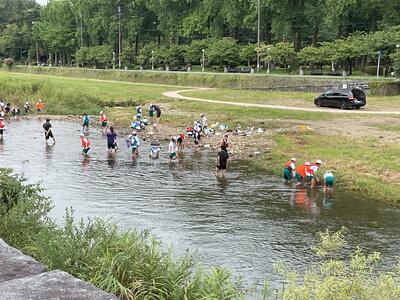 ※さわかやな天気に恵まれ、子供たちは、川の流れや音を感じながら、たくさんの生物を発見していました。
