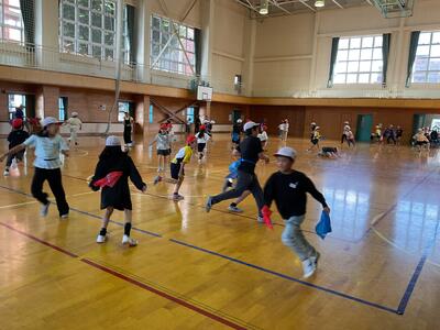 これは、今年度から行なっているもので、兄弟学級で、体力向上のための遊びを行うことで、全校の体力向上と、学校のみんなが「より」仲良しになることを目指しています。