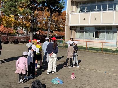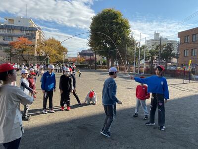 11月6日(木)の昼休みには、縦割り班のメンバーで長縄をしました。